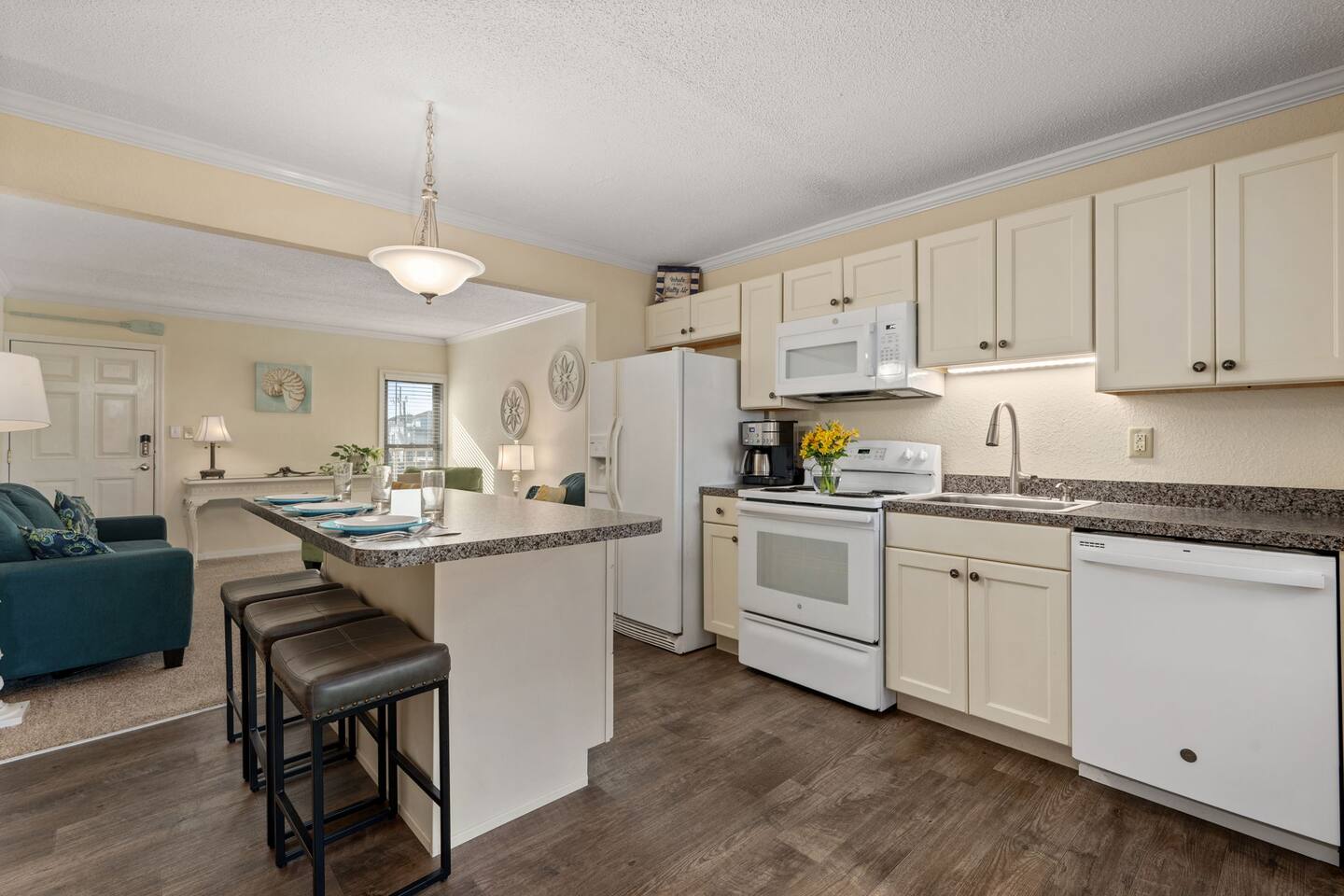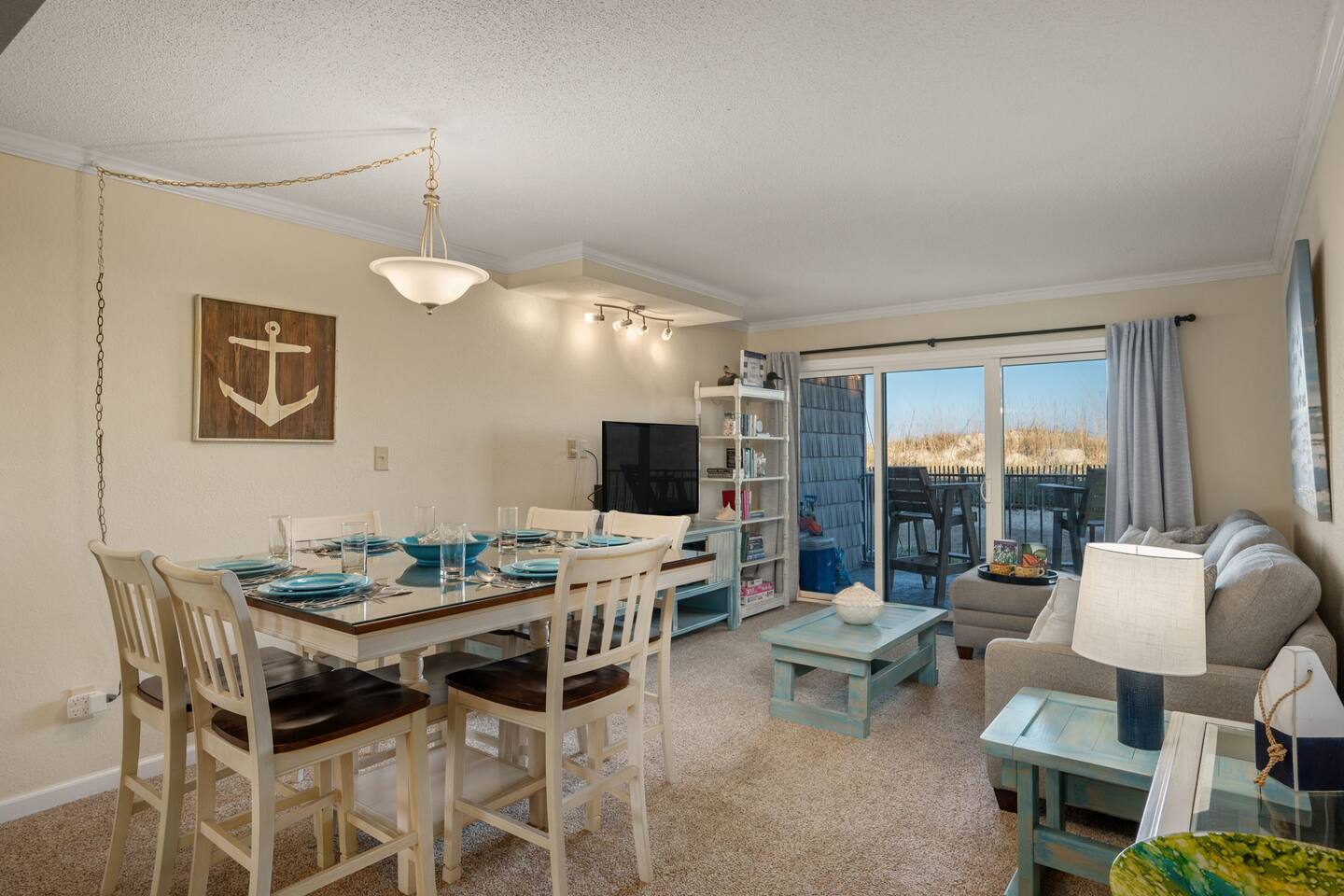 This 2 bed / 2 bath condo is the perfect choice for a small family, couple, or group of friends! Enjoy stunning oceanfront views from the covered deck in this first-floor condo just steps from the beach. Nothing better than listening to the ocean to start and end your days! This condo is designed to make your stay relaxing with our comfortable living room, well kept kitchen and spacious patio. Forget the hassle of packing linens β bath towels, sheets, and washcloths are thoughtfully provided. We also provide a starter kit of all the essentials youβll need to enjoy your time. This is vacation simplified! We look forward to hosting you during your visit to the OBX!