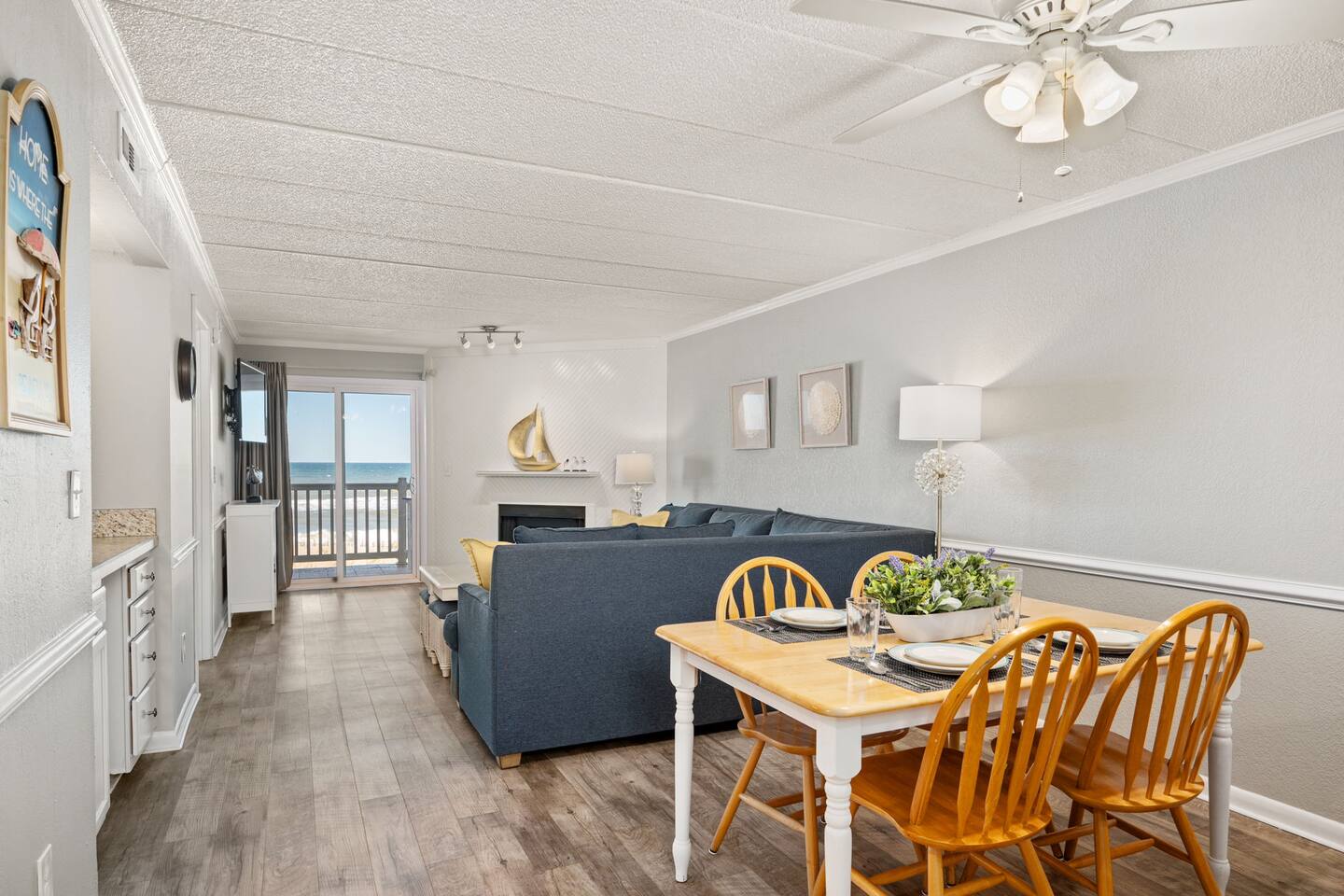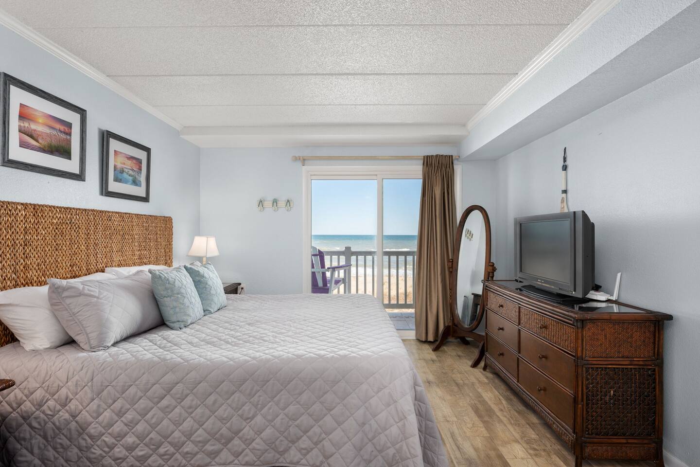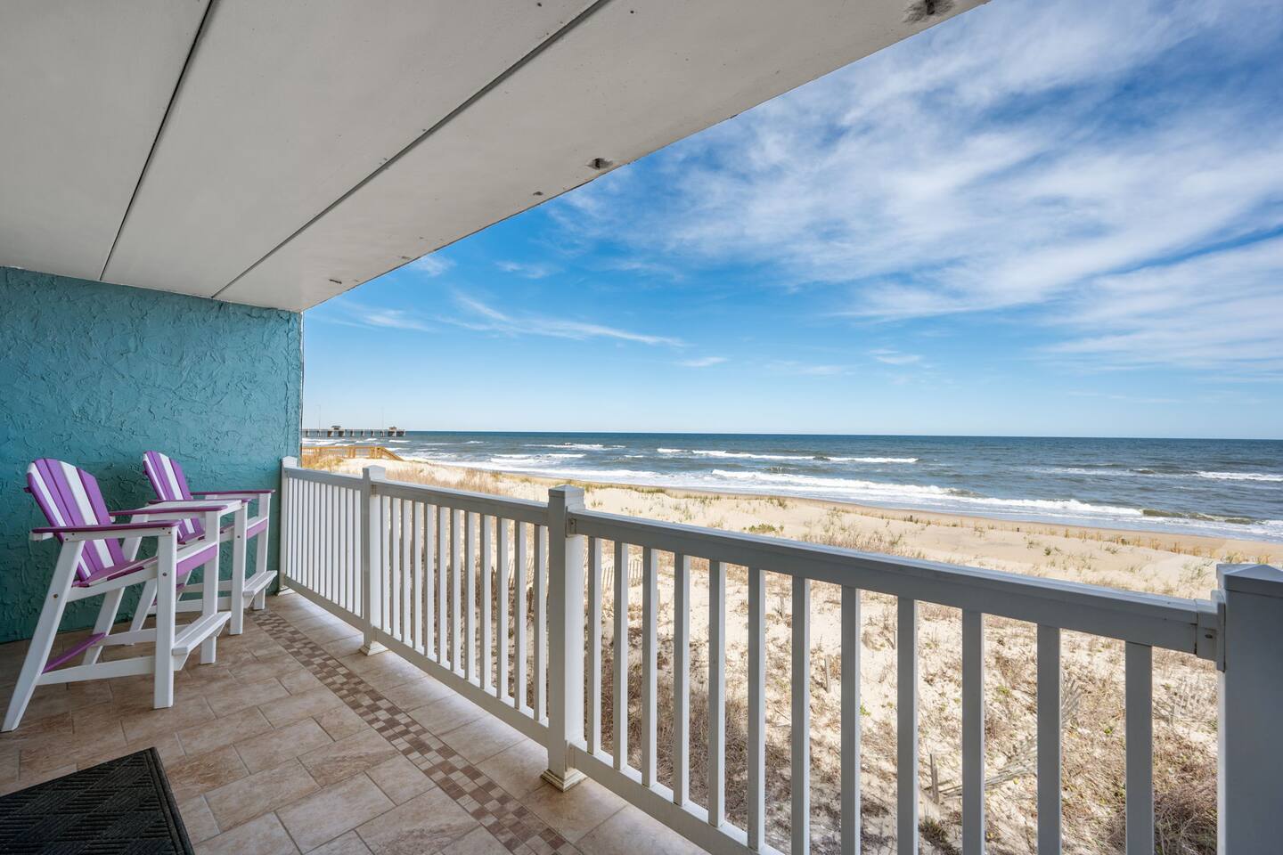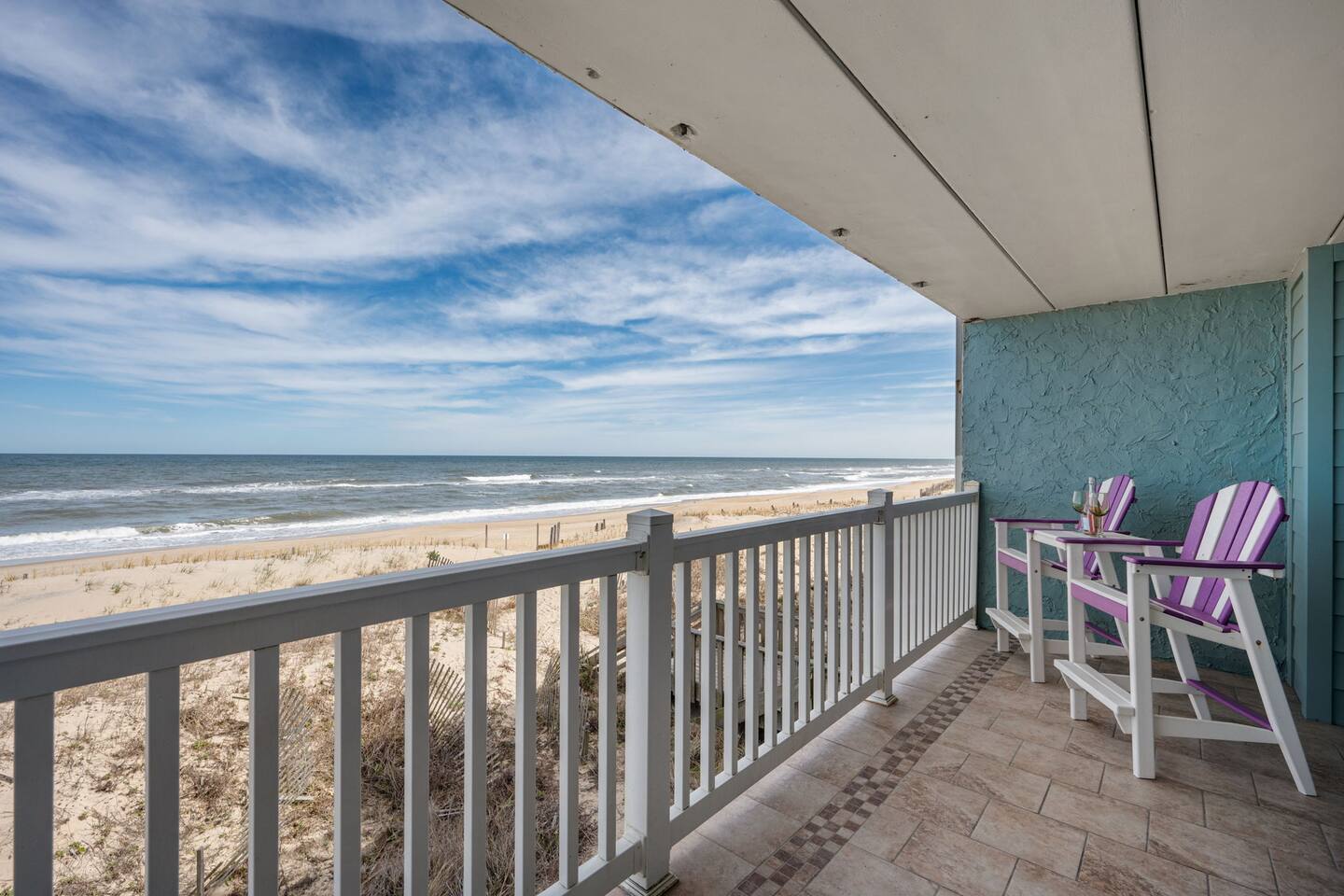 Create unforgettable memories with your loved ones at this stunning oceanfront condo in the heart of Nags Head. Wake up to breathtaking sunrises and wind down with mesmerizing sunsets, all from the comfort of your own unit! Sip your favorite beverage and marvel at dolphins frolicking in the waves from the expansive patio. Indulge in comfort with a master bedroom featuring a king-size bed and private bath, while the second bedroom offers a queen bed and a twin bed. The unit boasts a well-equipped kitchen, two flat-screen TVs, cable and wireless internet, and the convenience of an in-suite washer and dryer. Relax in style with beautiful patio furniture as you soak in the panoramic views. Direct beach access and an outdoor shower enhance your beachside experience. Plus, linens including bath towels, sheets, and washcloths are provided, ensuring a hassle-free stay. We also provide a starter kit of all the essentials you’ll need to enjoy your time. This is vacation simplified! Conveniently located near local attractions such as Jockey’s Ridge, Bodie Island Lighthouse, and the NC Aquarium in Manteo, as well as Oregon Inlet and Coquina Beach, you're perfectly situated to explore the best of the Outer Banks. With fantastic restaurants and shopping just a short drive away, you're right where you want to be for an unforgettable getaway!